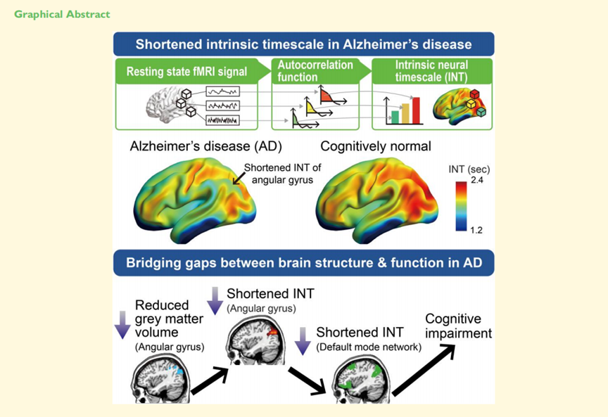文献原文:Murai SA, Mano T, Sanes JN, Watanabe T. Atypical intrinsic neural timescale in the left angular gyrus in Alzheimer's disease. Brain Commun. 2024;6(4):fcae199. Published 2024 Jul 11. doi:10.1093/braincomms/fcae199